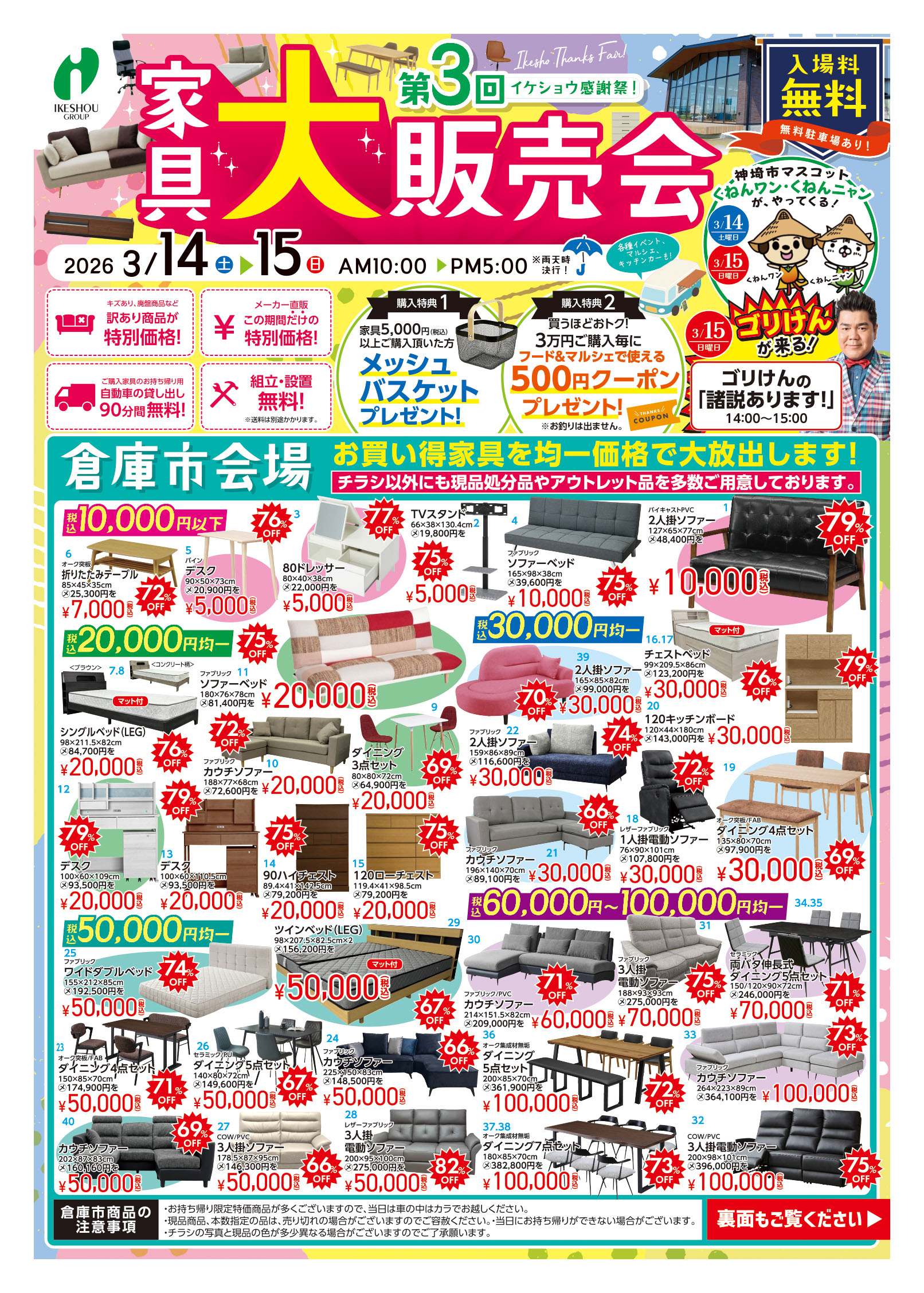 下記チラシに掲載されていないお得商品もたくさんございますので是非ご来場をお待ちしております。