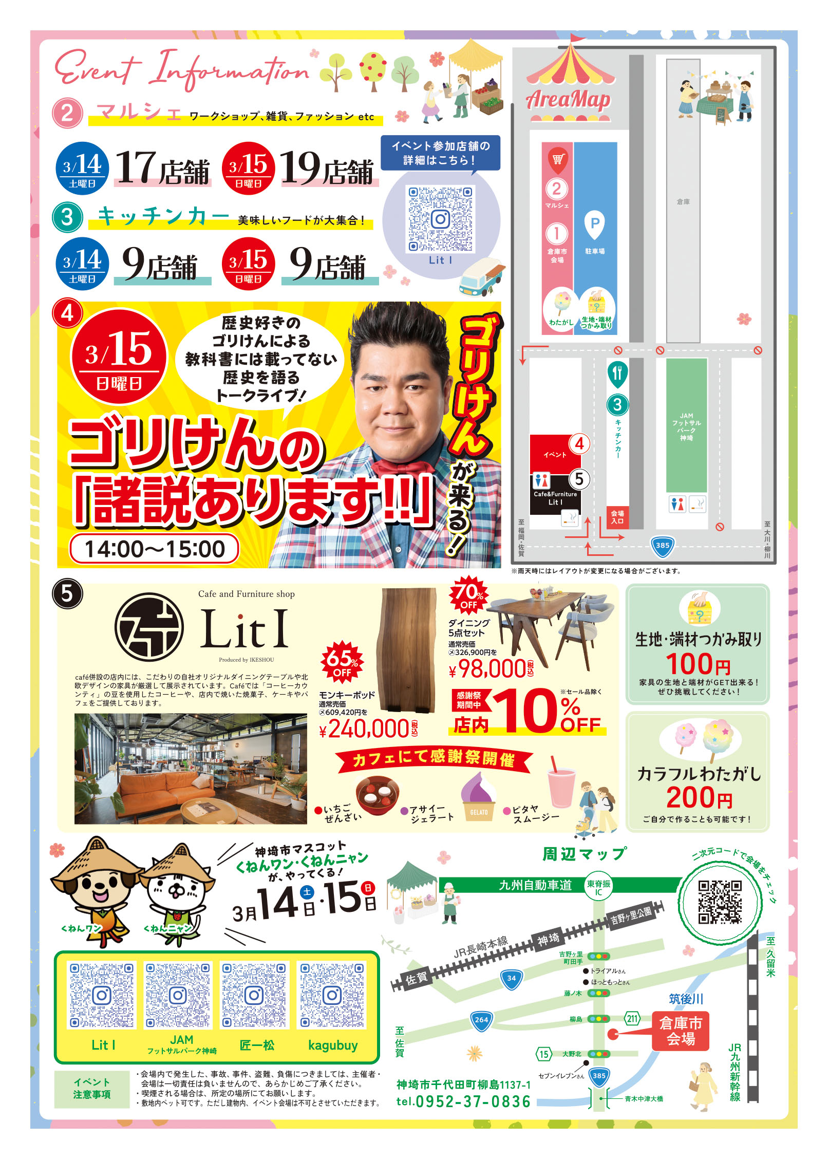 期間中は倉庫でのアウトレット品や訳あり家具やタイムセール品を行う倉庫市や、Lit Iではセール、マルシェも開催し、キッチンカーや雑貨の販売など行います。